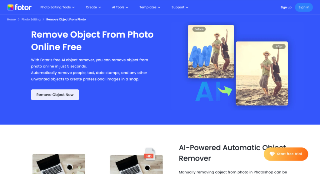 1. Fotor : Dissolvant d'objets AI