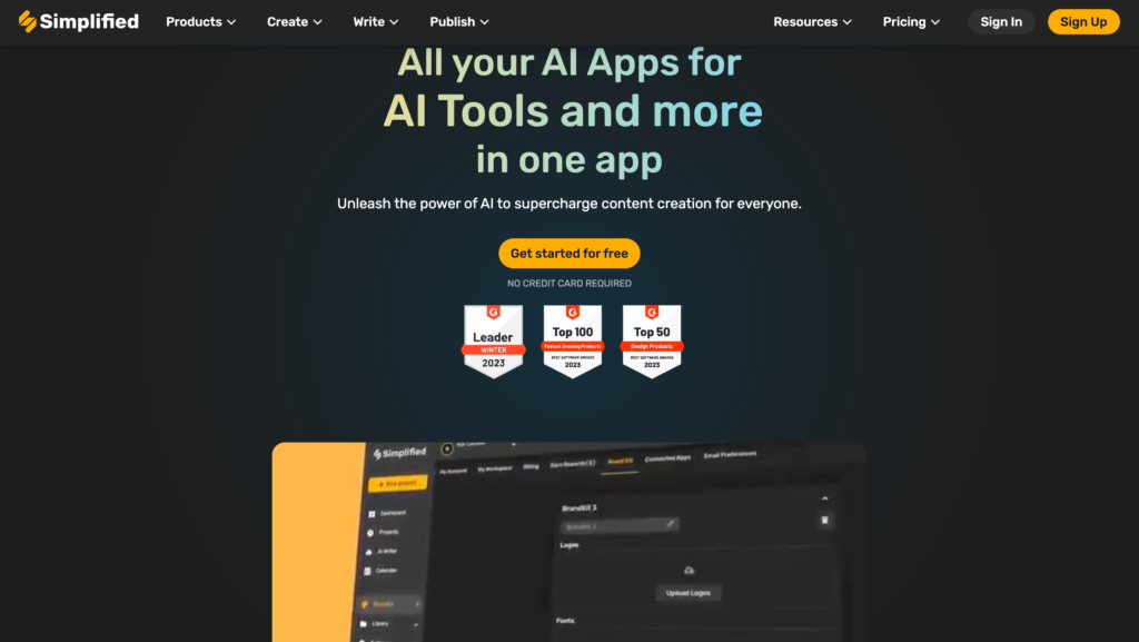 Simplified est un autre outil tout-en-un pour chaque besoin marketing. Son interface incroyablement simple ainsi qu'une gamme d'outils d'intelligence artificielle et de planification en font un changeur de productivité.